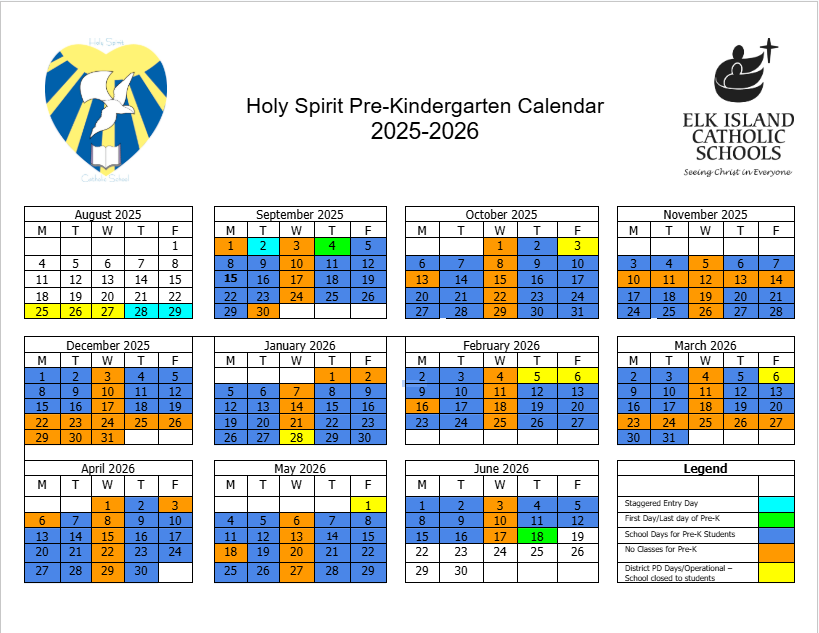 2025-2026 School Calendar 2025-2026 Pre-Kindergarten Calendar 2025-2026 Kindergarten Tuesday-Friday Calendar 2025-2026 Kindergarten Monday-Thursday Calendar 2026-2027 School Calendar